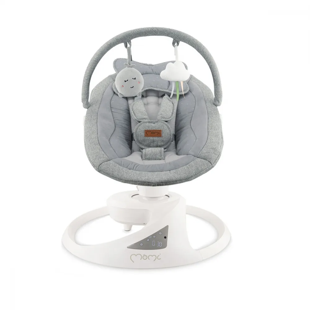 Profită reduceri și preț mic la Balansoar electric pentru bebelusi Momi Pearl Grey cu sezut rotativ 360 grade, numai la Nichiduta.