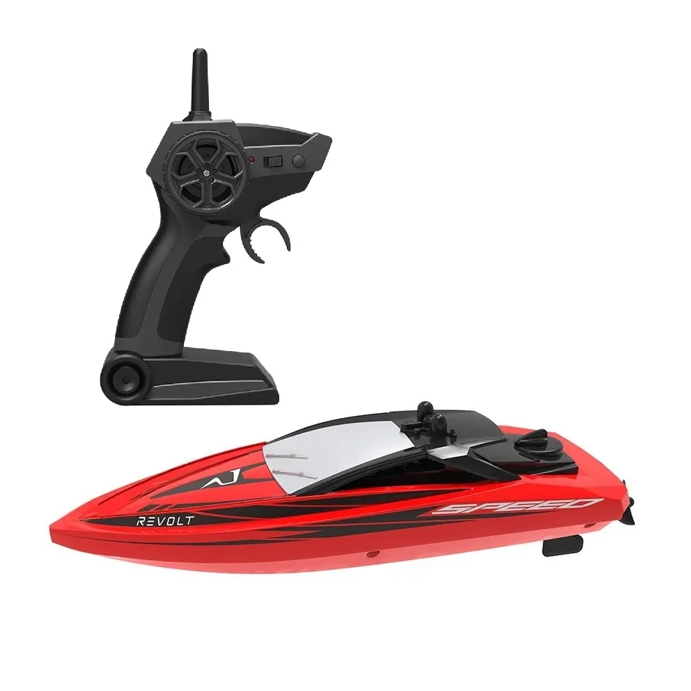 Caracteristici Barca cu telecomanda Syma Q5 Galaxy: Pregateste-te pentru aventuri acvatice cu barca radiocomandata Revolt Q5 Galaxy – rapida, eleganta si extrem de usor de controlat! Modelul rosu aprins impresioneaza printr-un design modern si o viteza de pana la 8 km/h, oferind o joaca dinamica si distractiva Bateria de 3.7 V 650 mAh ofera pana la 20 de minute de joc cu o singura incarcare, iar raza de actiune a telecomenzii este de pana la 50 de metri Telecomanda functioneaza la o frecventa de 2.4 GHz si necesita 2 baterii AA (nu sunt incluse) Barca se activeaza automat cand este scufundata in apa, fiind sigura si practic de utilizat Este inclus un cablu de incarcare USB