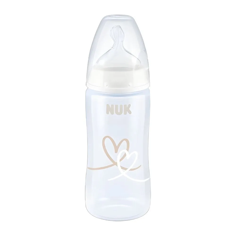 Profită reduceri și preț mic la Biberon cu tetina din silicon Nuk First Choice 300 ml 0-6 luni Alb inima, numai la Nichiduta.