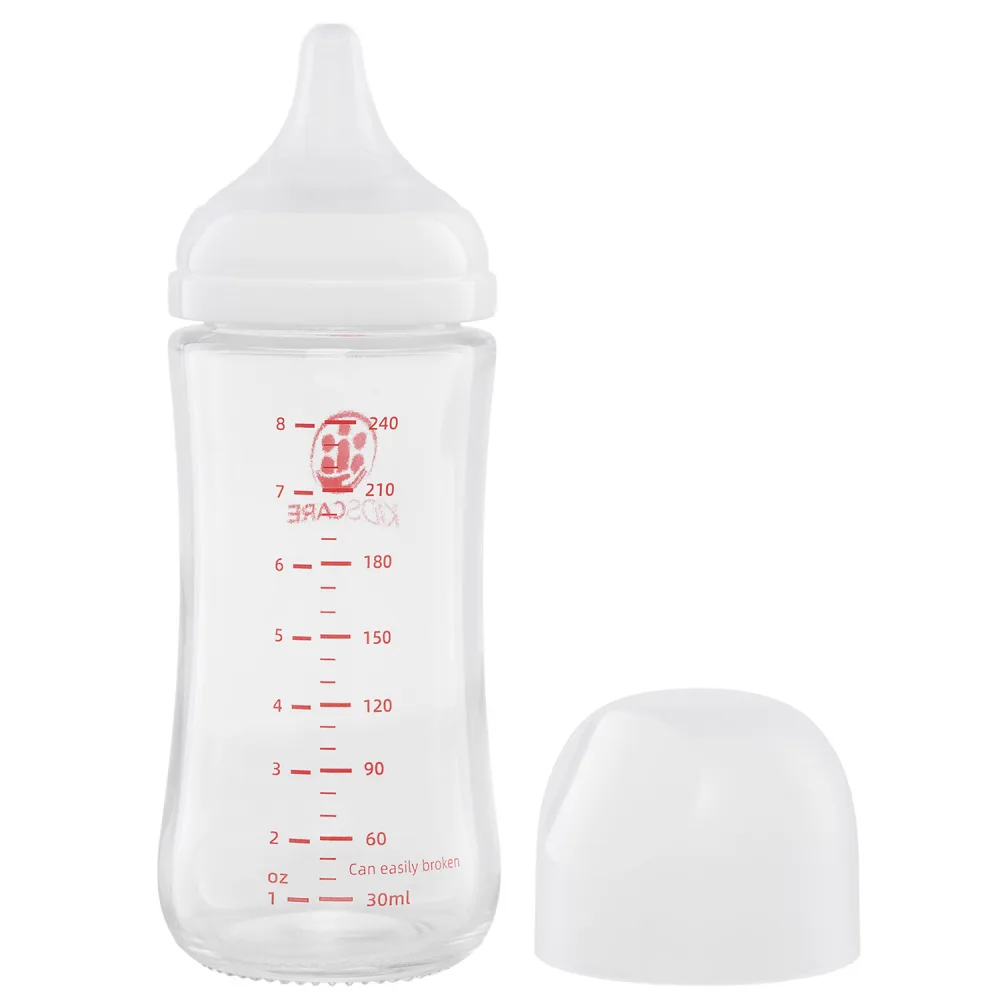 Biberon din sticla borosilicat 240 ml KidsCare cu tetina din silicon