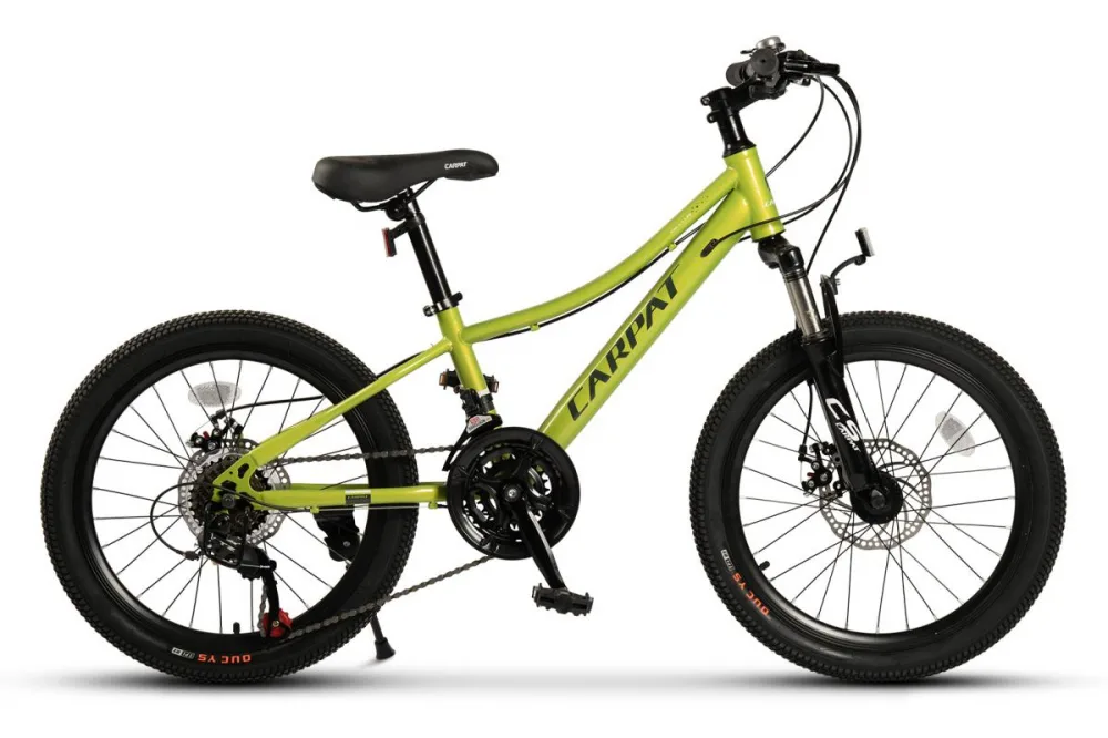 Profită reduceri și preț mic la Bicicleta pentru copii 7-10 ani Carpat Polestar C20261A Verde, 21 viteze, frane pe disc, roti 20 inch, cabluri integrate, numai la Nichiduta.