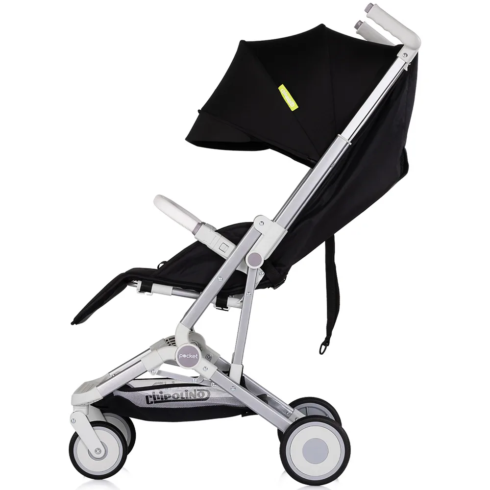 Profită reduceri și preț mic la Carucior pentru copii Chipolino Pocket Noir, cadru usor, greutate admisa 22 kg, numai la Nichiduta.