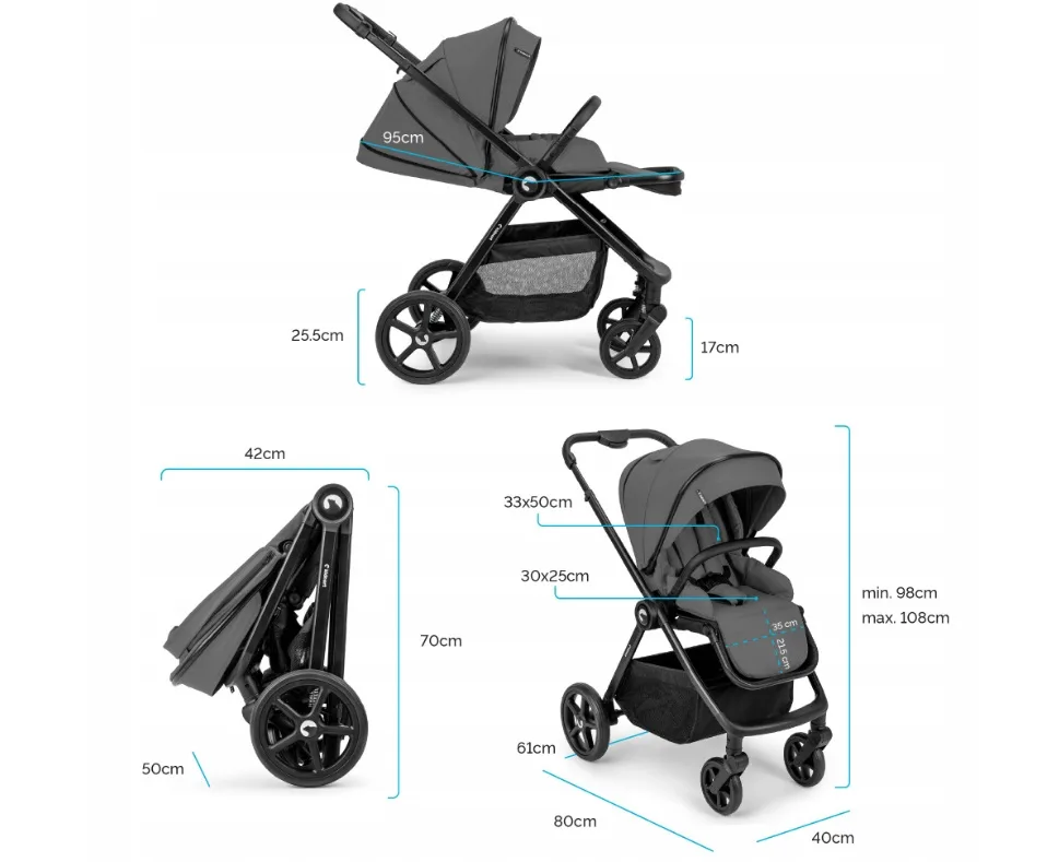 Profită reduceri și preț mic la Carucior pentru copii Kidnort Alskar dark gray, 6-48 luni pana la 22 kg, bara de protectie detasabila, capotina extensibila, spatar si suport pentru picioare reglabile, cu geanta si accesorii incluse, numai la Nichiduta.