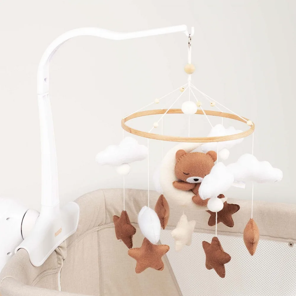 Neno Tedi este un carusel elegant i funcional, creat pentru a icircnfrumusea camera bebeluului i a sprijini dezvoltarea sa senzorial.nbspRealizat manual, aceasta prezint jucrii moi i pastelate, care s