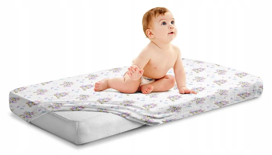 Cearceaf cu banda elastica pentru pat copii dimensiune 140 x 70 cm, 100 bumbac, BabyMam Happy Unicorn