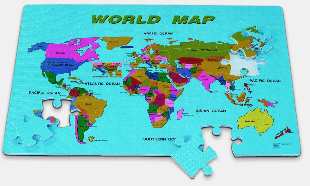 Confecionate din EVA, aceste elemente se asambleaz ca un puzzle pentru a forma un covora de joac colorat, reprezentacircnd harta Pmacircntului.Harta se formeaz din 54 de elemente.Dimensiunea covoraulu