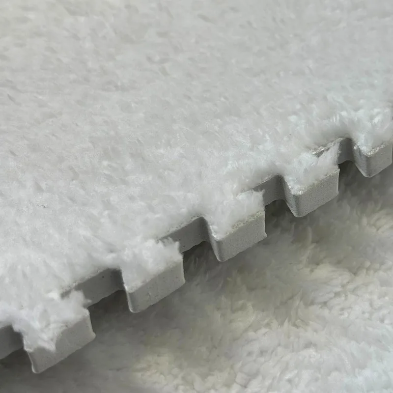Covoras puzzle pufos 61.5×61.5×1.7 cm, spuma eva, set 2 piese culoare alb