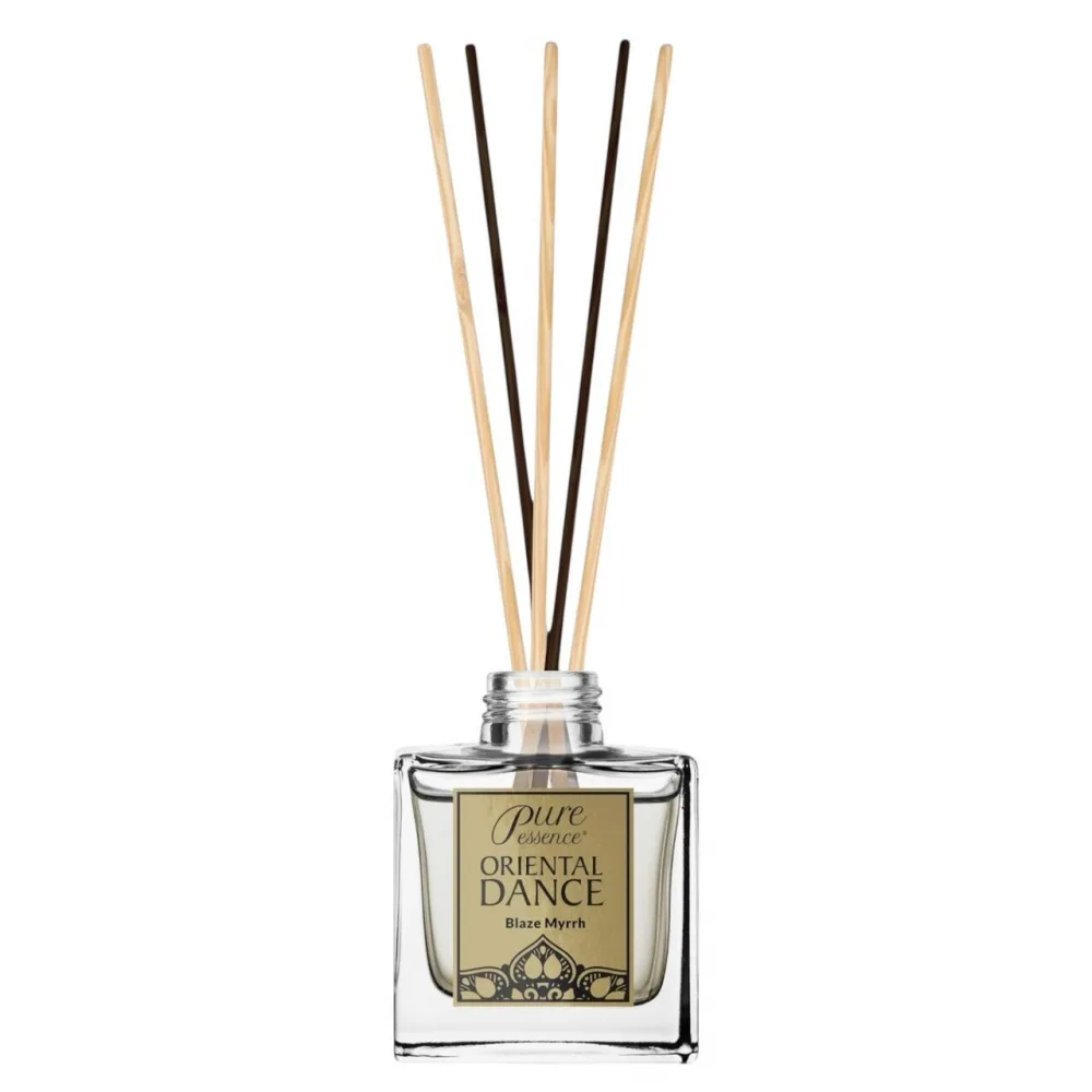 Parfum de camera cu betisoare Oriental Dance ndash Blaze Myrrh 75mlUn parfum cu un caracter puternic oriental, care imbina condimente proaspete, rasini balsamice si note lemnoase catifelate.Perfect pe