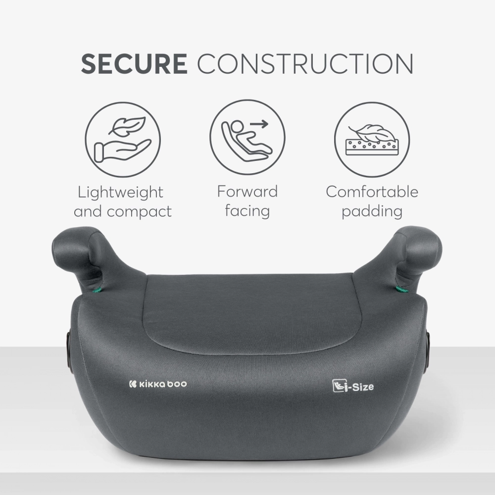 Inaltator auto cu isofix Kikkaboo i-Tip 2 i-SIZE Dark Grey 125-150 cm, suport pahar inclus, centura de ghidaj, husa lavabila, cotiere, certificat R129