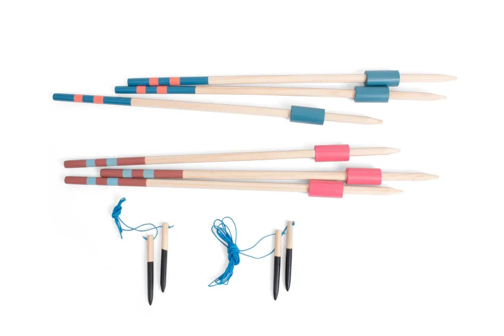 Cum se joaca:- Fa un pas in fata, alearga si arunca sulita cat de departe poti! – Tinteste sa treci linia de sosire – cine reuseste sa arunce cel mai departe? Un joc activ si distractiv, perfect pentru competitii prietenoase in aer liber! Pachetul contine:- 6 sulite din lemn (2 seturi): 60 cm;- Marcaj pentru start and finish (din franghie). Ce invata copiii din acest joc?- Motricitate grosiera;- Joaca in aer liber;- Forta musculara;- Ideal pentru copiii plini de energie si pentru intreceri sportive in parc sau gradina. Material: lemn durabil.