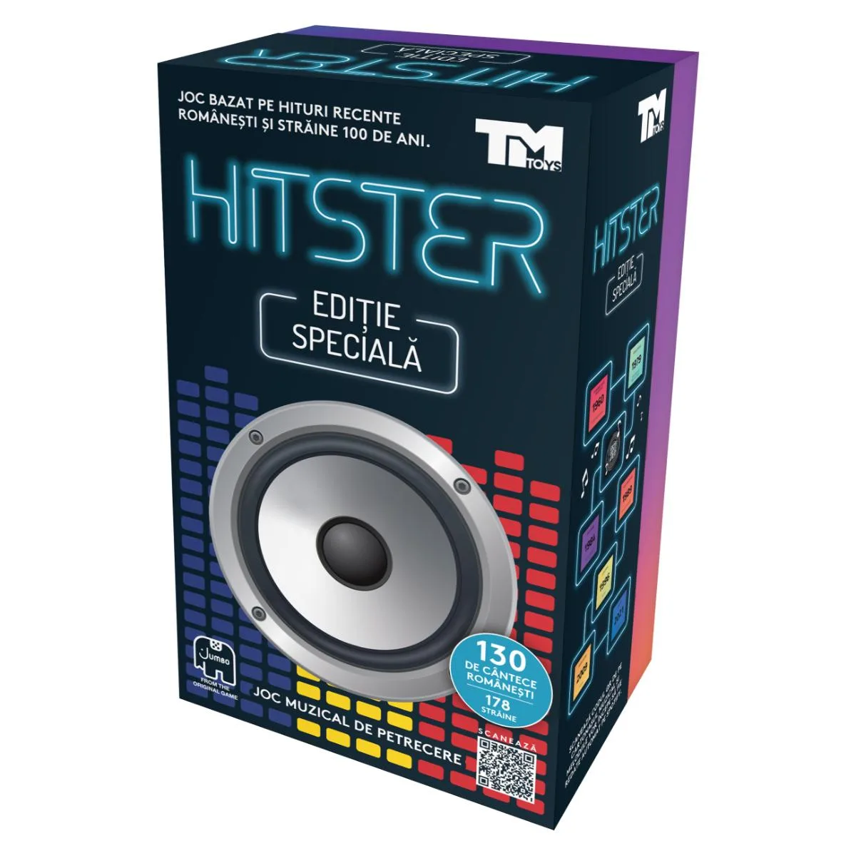 Porneste distractia cu Hitster, jocul de petrecere care aduce muzica in centrul atentiei! Aceasta editie noua ofera si mai multa distractie, datorita cardurilor muzicale ce includ cele mai bune hituri romanesti 130 si 178 internationale din ultimele decenii. Regulile sunt simple si captivante asculta melodiile si incearca sa le asezi in ordine cronologica pe propria ta linie temporala muzicala. Jocul cuprinde hituri din ultimii 100 de ani, transformand fiecare runda intr-o adevarata calatorie muzicala in timp, plina de surprize si momente amuzante. Aceasta editie Hitster poate fi jucata independent sau folosita ca extensie pentru versiunea originala. Este alegerea perfecta pentru petreceri, seri cu prietenii sau intalniri de familie, unde buna dispozitie si muzica merg mana in mana. Pachetul contine:- 308x carti cu hituri muzicale;- 37x jetoane;