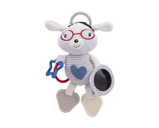 Este o jucarie educativa ce are multe elemente ce ajuta la dezvoltarea copilului.Datorita inelului de prindere aceasta poate fi atasat la patut sau carucior fiind mereu la indemana bebelusului.Caracte