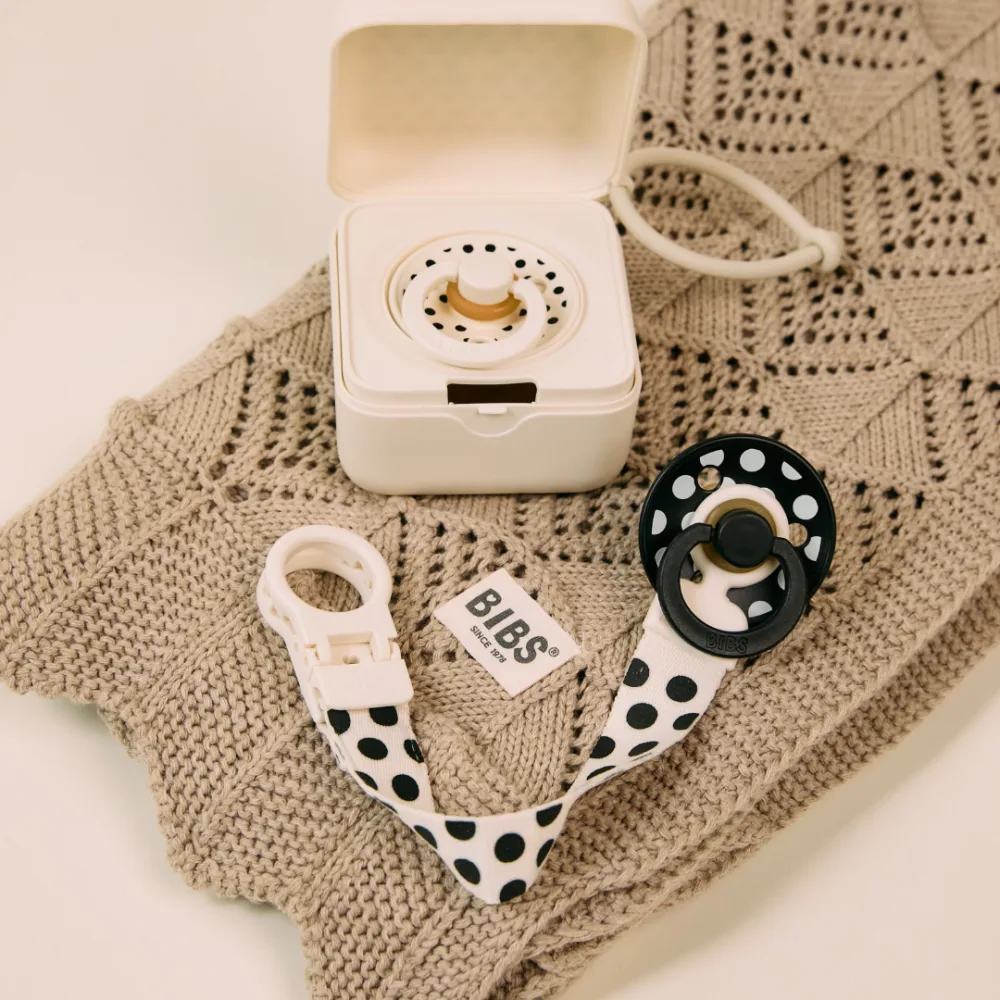 Lantisor clip Loop pentru suzeta Bibs Studio Collection Polka Dots Ivory Black