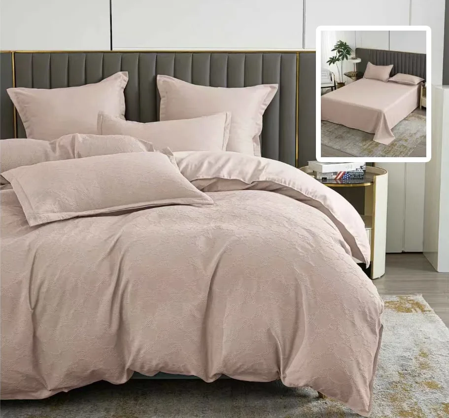 Lenjerie de pat cu 6 piese Natur Uni Baroque cu cearceaf pat clasic, cearceaf pilota 200 x 230 cm, 2 fete perna 50 x 70 cm si 2 fete perna 70 x 70 cm cappuccino