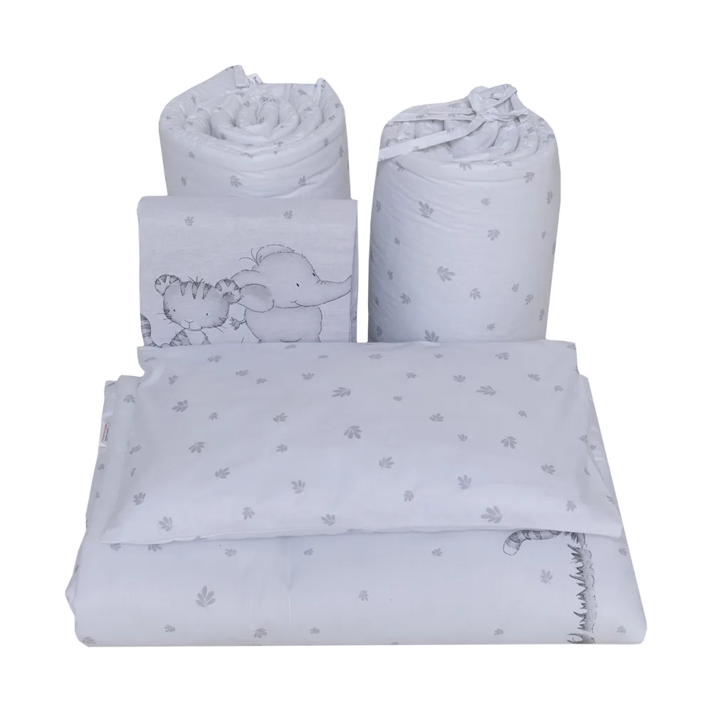 Comandă Lenjerie din bumbac cu 5 piese pentru saltea 120×60 cm Beberoyal Safari Friends Alb ambalata intr-o gentuta de transport de la Nichiduta.