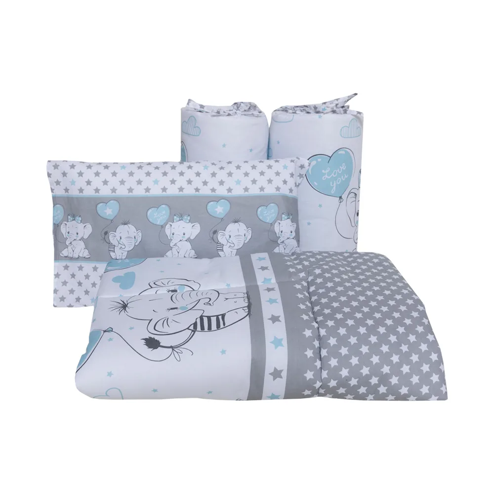 Lenjerie din bumbac cu 6 piese pentru saltea 120×60 cm Beberoyal Love Elephants Blue
