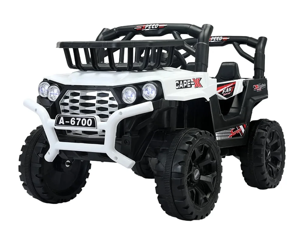 Profită reduceri și preț mic la Masinuta electrica pentru copii intre 2 si 4 ani, 4×4, Kinderauto CAPE-X, 100W, 12V, scaun tapitat, alb, numai la KinderAuto.
