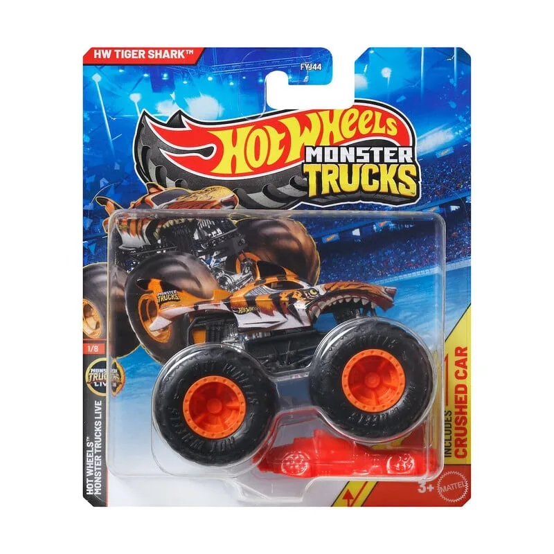Plonjeaza in aventura cu HW Tiger Shark, monster truck-ul Hot Wheels inspirat de pradatorul acvatic feroce! Cu un design agresiv si detalii spectaculoase, acest vehicul este pregatit sa cucereasca orice teren si sa transforme fiecare joaca intr-o experienta palpitanta. Echipat cu roti mari si anvelope rezistente, Tiger Shark ofera performanta si durabilitate, in timp ce culorile vibrante si forma inspirata de rechin il fac irezistibil pentru colectionari si pentru cei care adora cascadoriile si adrenalina monster trucks.  Pachetul contine:- 1x masina HW Tiger Shark.