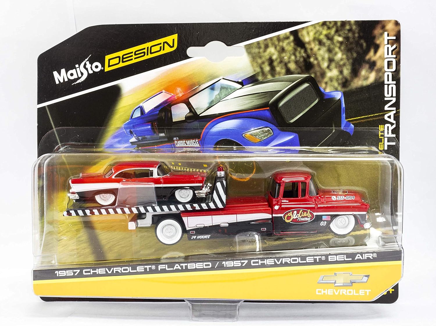 Masinuta Maisto, Chevrolet Flatbed Trailer si Chevrolet Bel Air Red, 1:64