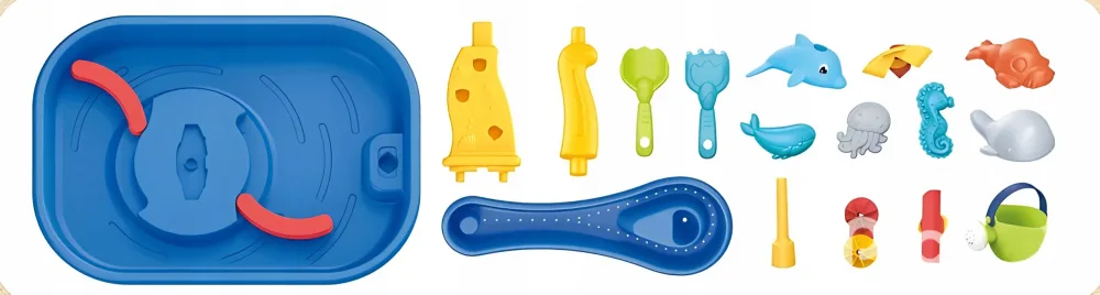 Masuta de joaca cu apa si nisip pentru copii 2in1 Matadi Sand and Water, utilizare interiorexterior, elemente mobile, jucarii incluse, dimensiune 53,5 x 38 x 42 cm