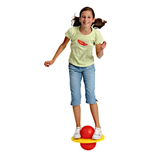 Ofer o modalitate jucu de a antrena simul echilibrului i coordonarea.Icircn mijlocul mingii de forma unui cifrei opt se afl o plac de plastic foarte stabil. Un copil st pe ea, stracircnge mingea cu pi