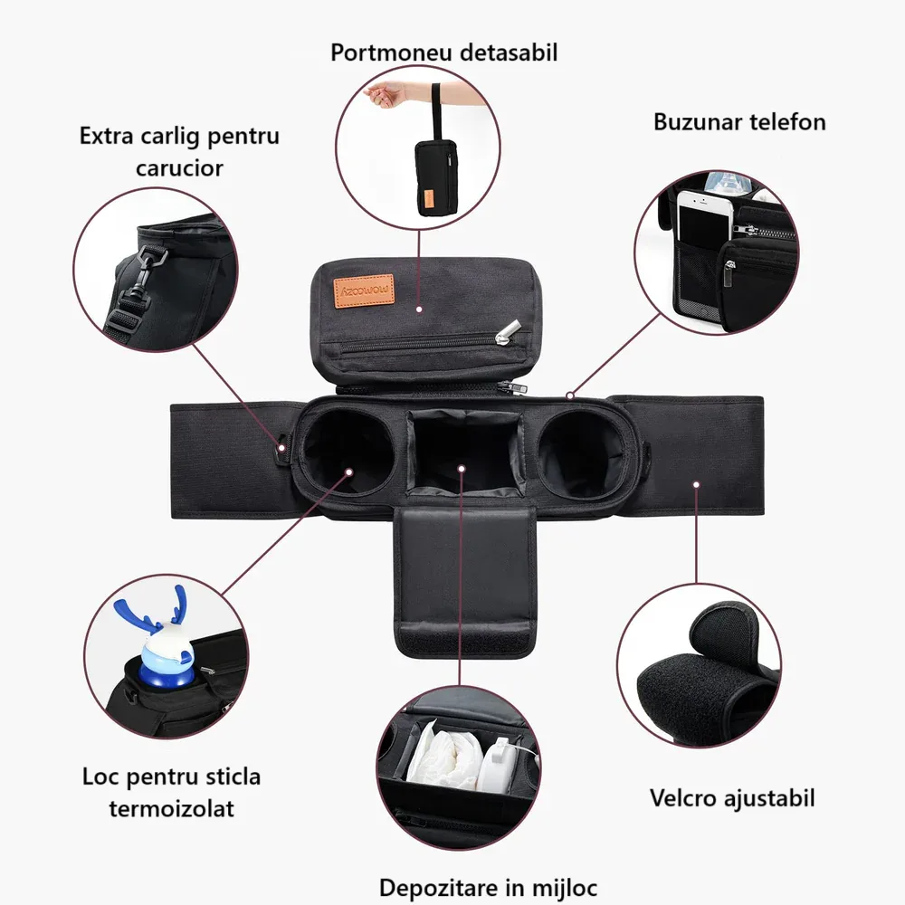 Profită reduceri și preț mic la Organizator universal pentru carucior cu suport pentru pahar Momcozy, numai la Nichiduta.