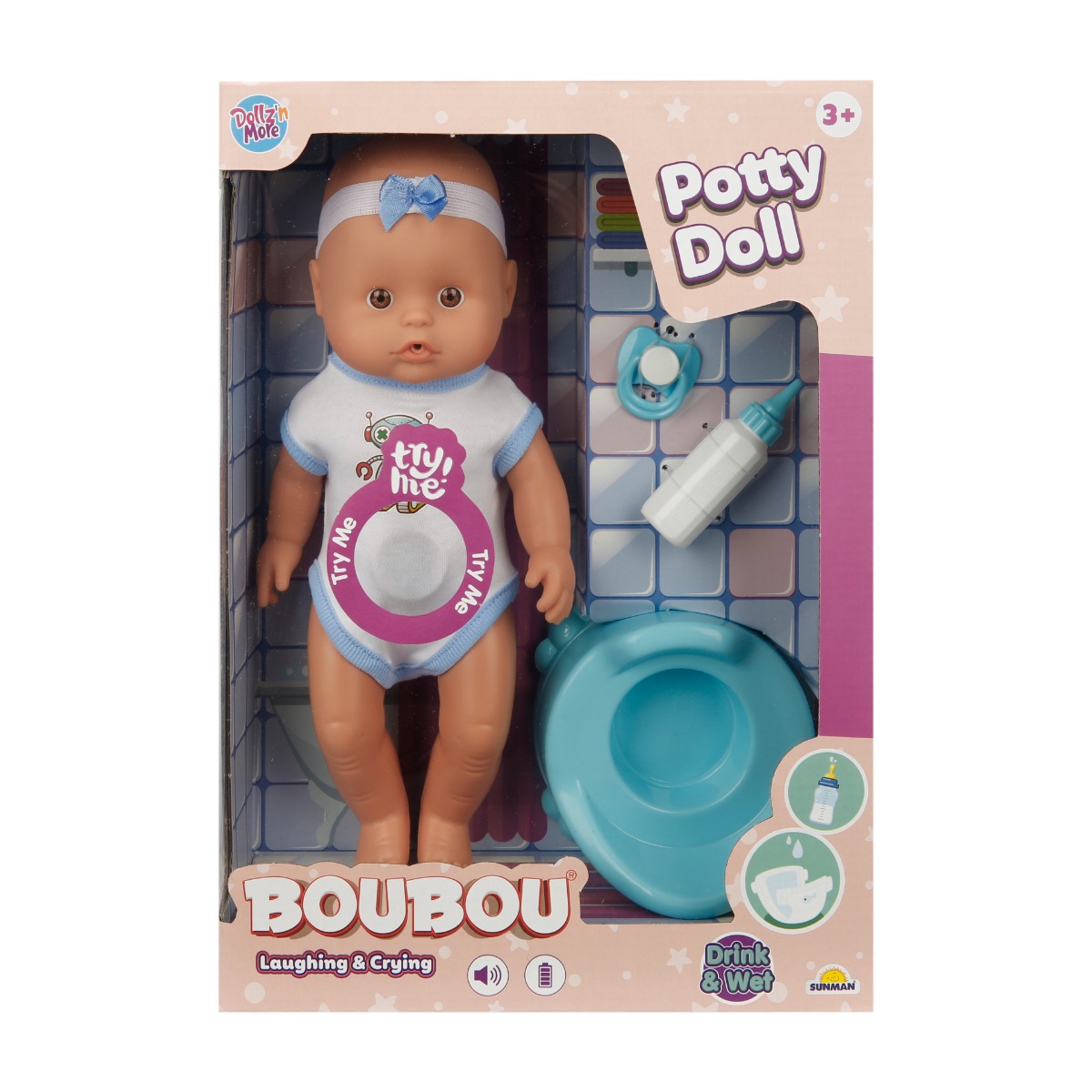 Profită reduceri și preț mic la Papusa bebelus cu olita, Dollz n More, Boubou, 30 cm, Albastru, numai la Noriel.