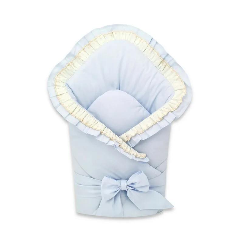 Comandă Paturica de infasat MimiNu cu volanase si dantela 75×75 cm Blue de la Nichiduta.