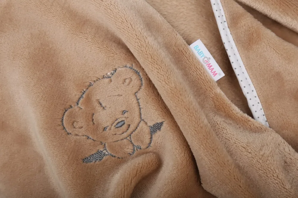 Paturica din plus pentru copii BabyMam, dimensiune 75 x 100 cm, model brodat Cappuccino Teddy Bear