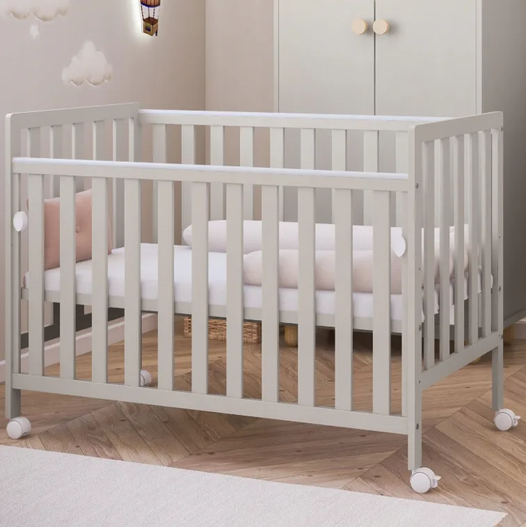 Patut din lemn Bambi casmir cu laterala culisanta, roti cu blocare si protectie silicon pentru dentitie, 120 x 60 cm