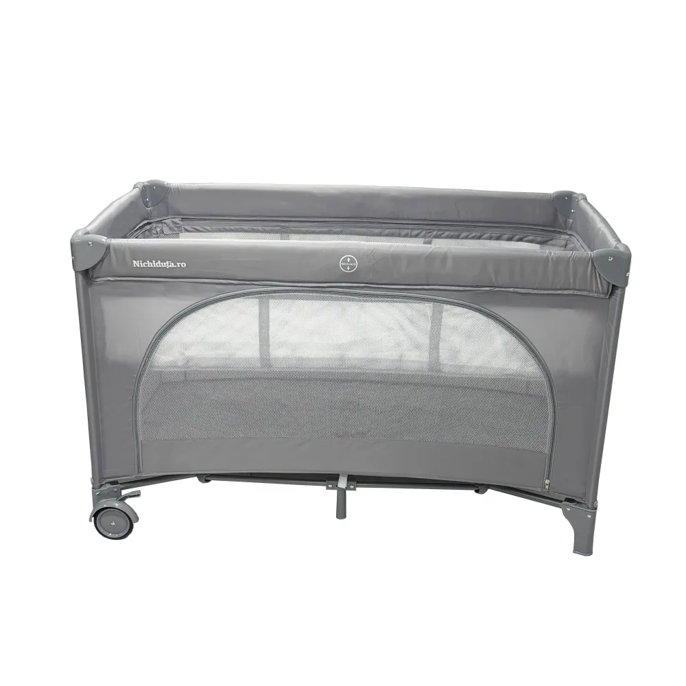 Comandă Patut pliabil pentru copii Nichiduta Grey, cu doua nivele, multifunctional 2 in 1, cadru din otel, material poliester 210D, roti cu franare, dimensiune 125 x 65 x 77 cm, geanta de transport inclusa de la Nichiduta.