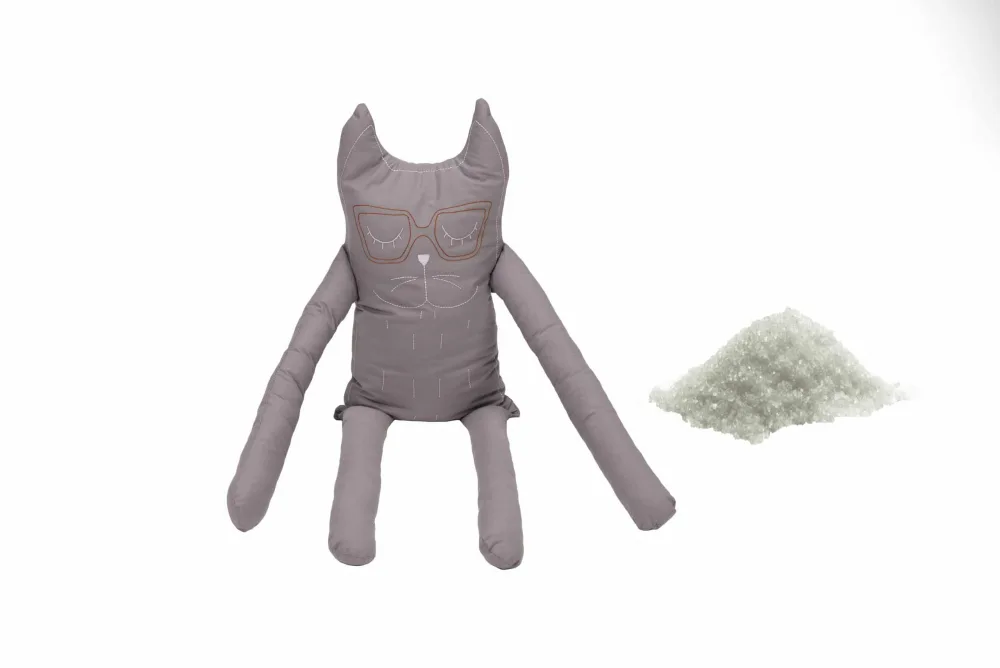 Perna in forma de pisica SomnArt Gri, husa din bumbac, umplutura cu sare si puf siliconizat