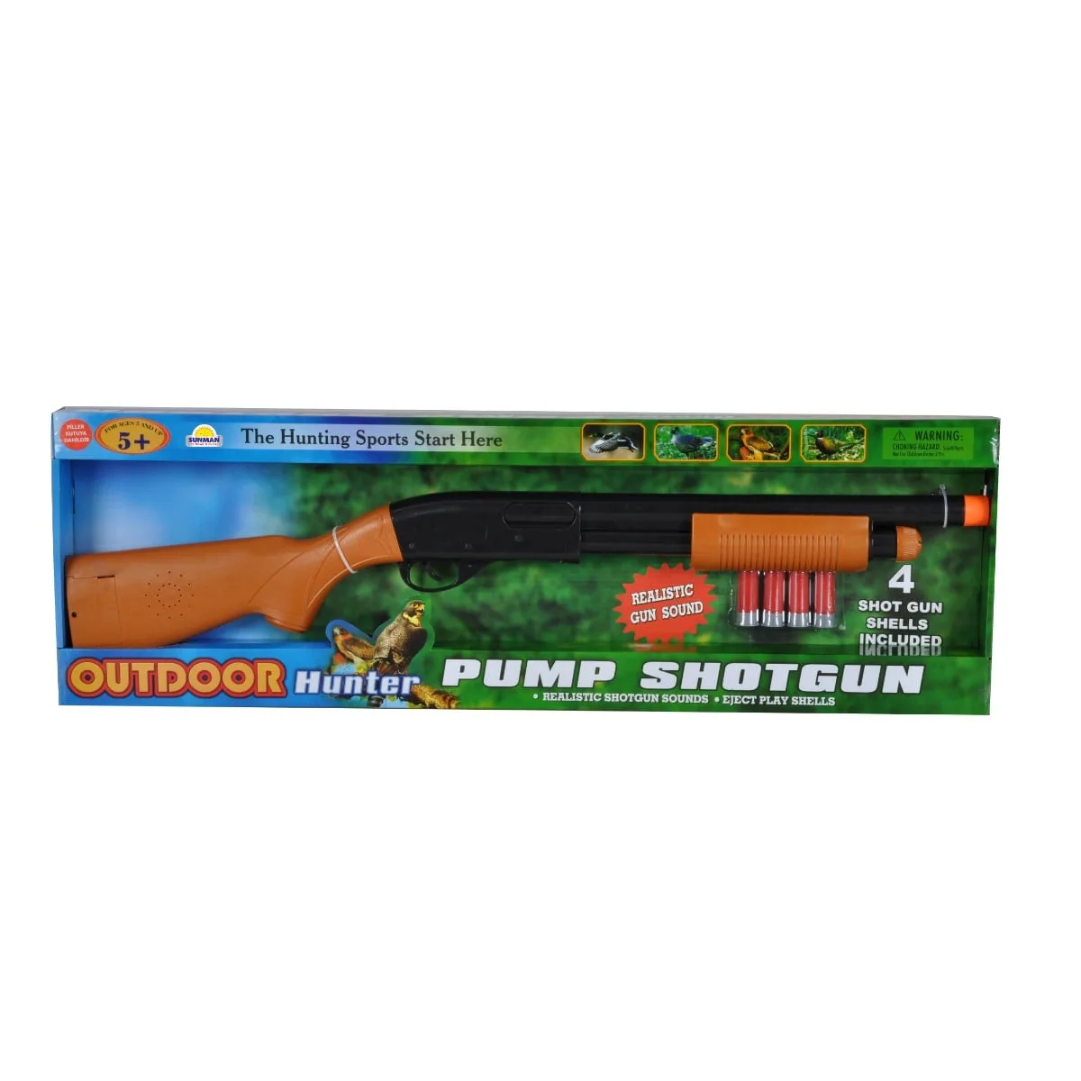 Pregateste-te pentru jocuri pline de aventura cu pusca Sound Shotgun! Jocul este acum mai realist si mai distractiv cu aceasta pusca de vanatoare cu efecte sonore si caracteristici detaliate de design. Sunt disponibile 4 gloante in pusca fara luneta. Copiii pasionati de aventura vor participa acum la batalii cu mai multa incredere! Baterii! Produsul functioneaza cu 2 baterii de tip AA (incluse). Lungime pusca: 76 cm;Dimensiunile produsului in ambalaj: 77 x 5 x 25 cm. Atentie! Contraindicat copiilor mai mici de 3 ani. Jucaria poate contine piese mici, care se pot inghiti sau inhala, existand pericolul de sufocare. Nu lasati ambalajele jucariilor la indemana copiilor. Indepartati orice ambalaj al jucariei inainte de a o oferi copilului. Va recomandam sa supravegheati copilul in timp ce se joaca cu produsul. Pastrati instructiunile si etichetele pentru referinte viitoare. Pastrati jucaria departe de foc; feriti jucaria de temperaturi ridicate si umiditate.