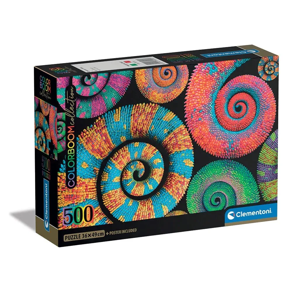Caracteristici Puzzle Clementoni 500 piese Puzzle Colorboom Curly Tails 35529: Un puzzle cu cozi colorate de iguana Face parte din colectia Colorboom Numar de piese: 500 Varsta recomandata: +9 ani Include poster Dimensiunile puzzle-ului asamblat: 36 x 49 cm Clementoni 35529