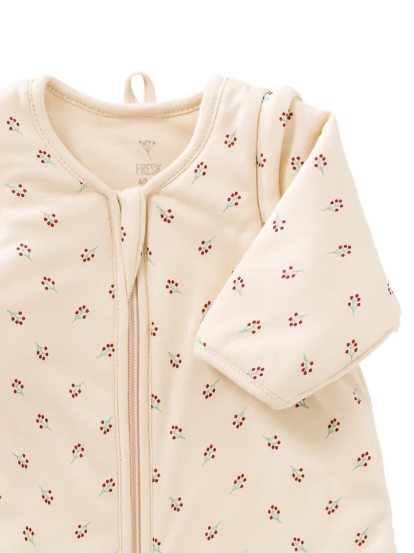Sacul de dormit gros, cu macircneci detaabile, model Berries, icircl ajuta pe cel mic s aib parte de un somn linititor i confortabil, datorit celor dou straturi de bumbac organic i cptueala fin din po