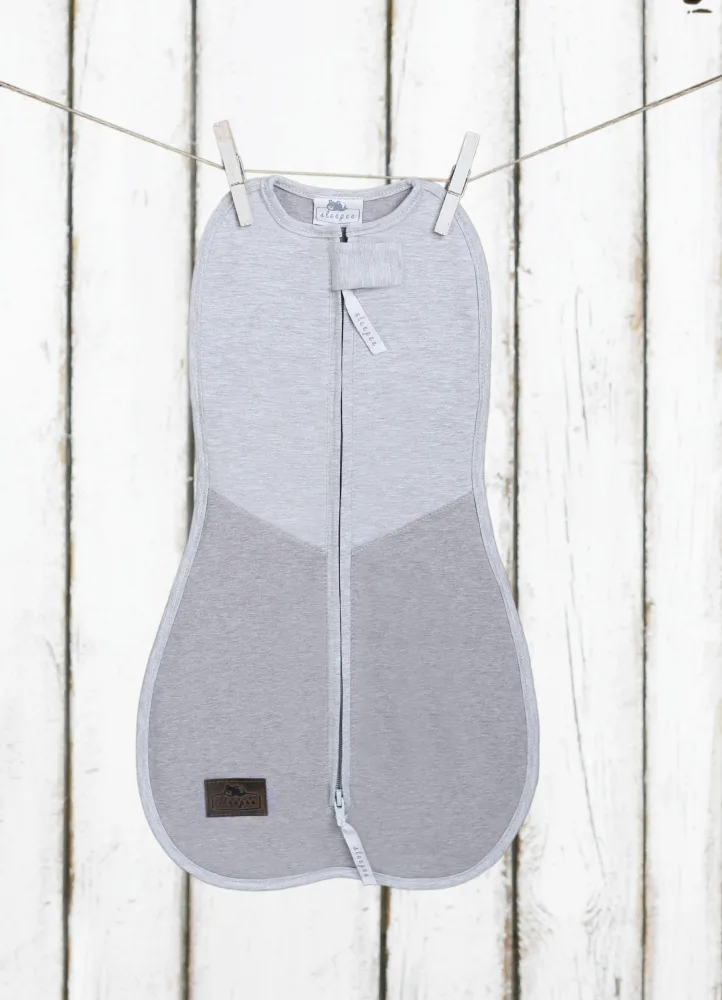 Comandă Saculet swaddle pentru infasat nou nascut + caciulita First Step gri inchisgri deschis Sleepee de la Nichiduta.