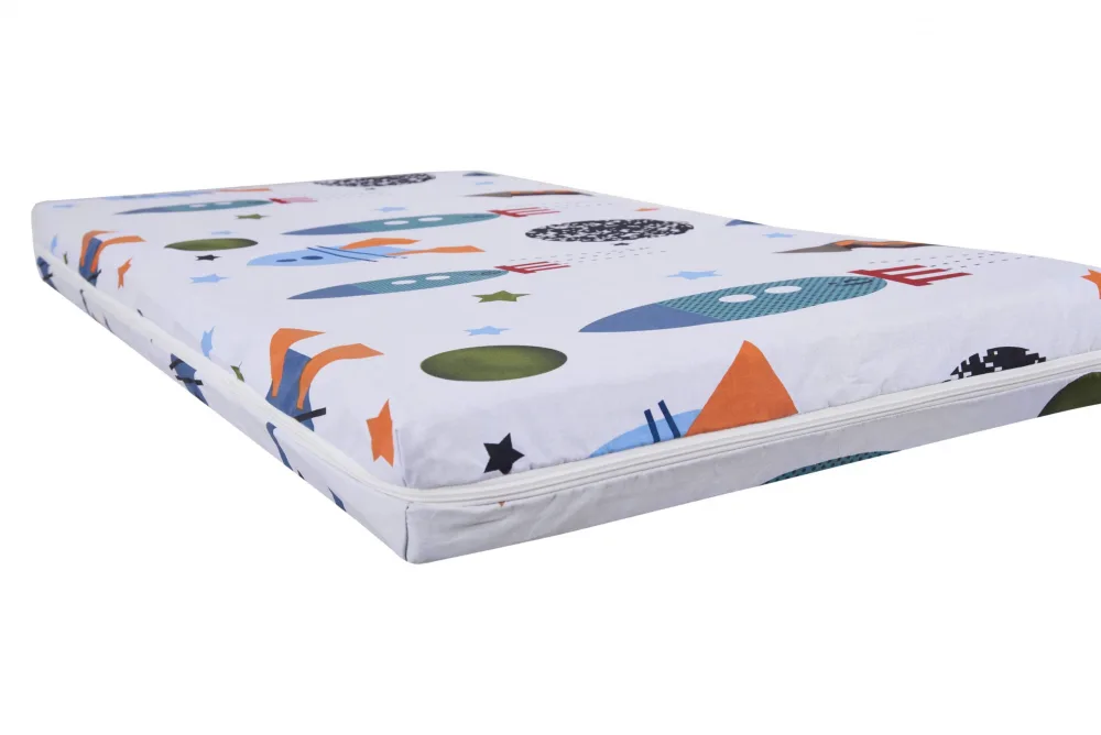 Profită reduceri și preț mic la Saltea cu memorie Somnart Memory 70x140x10 cm husa impermeabila, model Rachete, numai la Nichiduta.