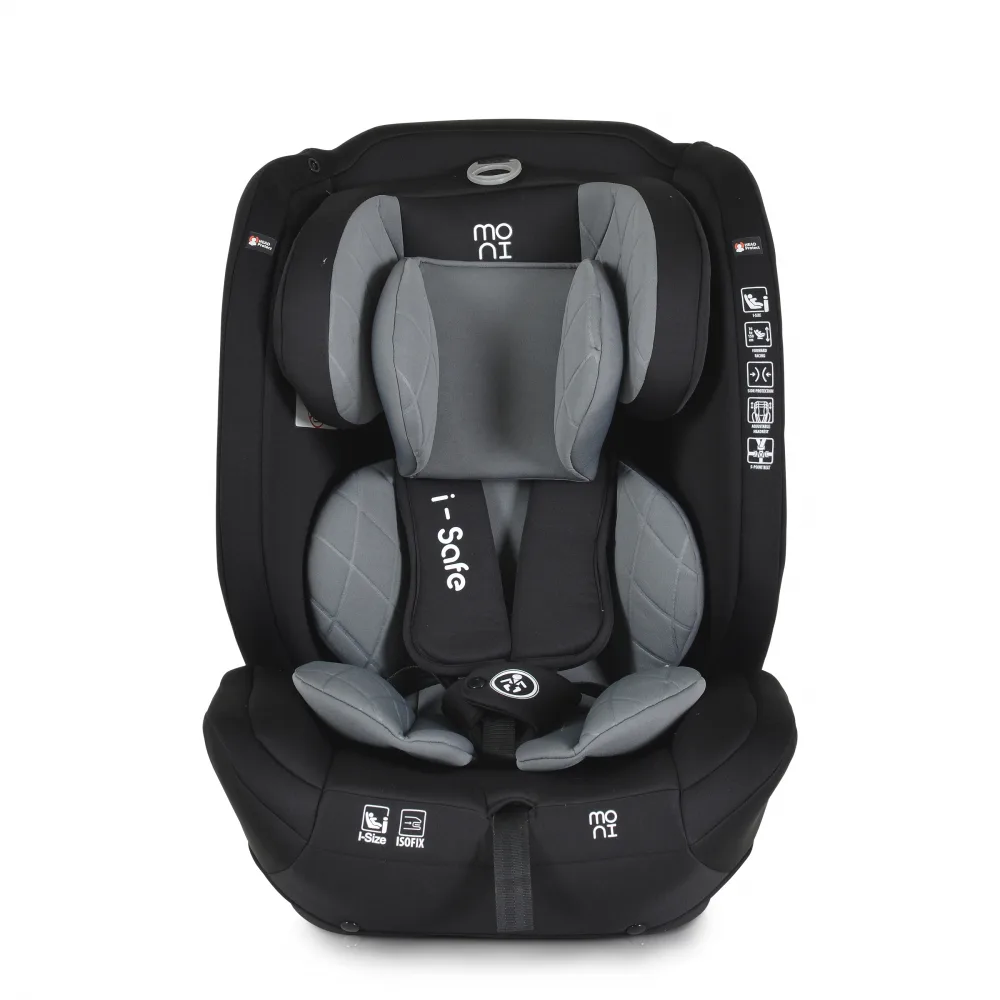Scaun auto cu isofix Moni I-Safe Grey 76-150 cm,certificare i-size R129,centura ancorare top tether,tetiera reglabila 13 pozitii,husa detasabila,saltea reductor,pernuta gat si jucarie plus incluse