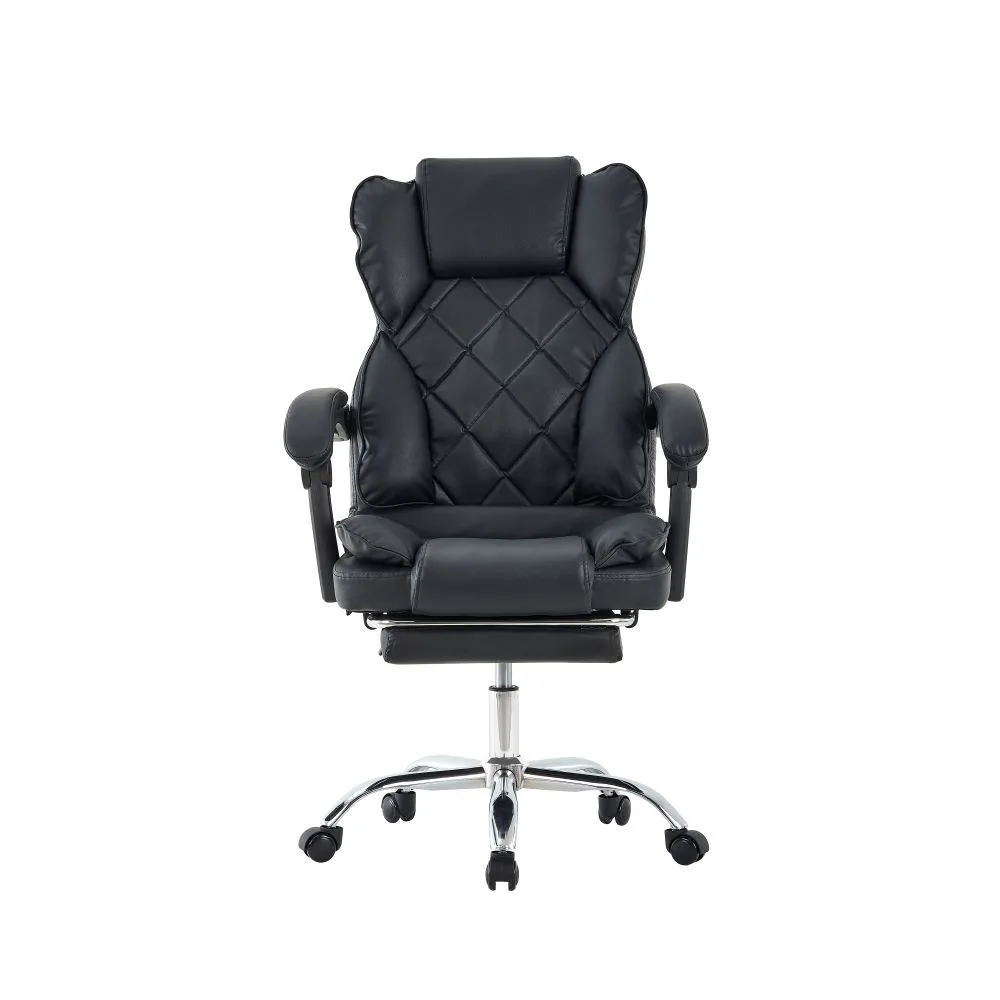 Profită reduceri și preț mic la Scaun negru de birou, suport picioare, spatar rabatabil, pivotant la 360 grade, cotiere buretate, piele ecologica, numai la Nichiduta.