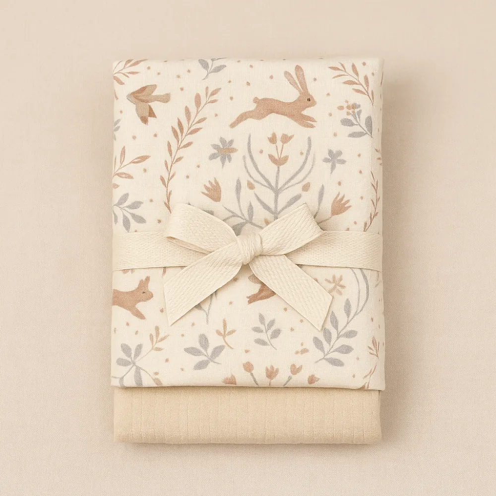 Setul Natural Calm icircmpletete naturaleea, simplitatea i rafinamentul icircn dou museline create cu grij din bumbac muselin 100, fine la atingere i extrem de plcute pentru pielea delicat a bebeluulu
