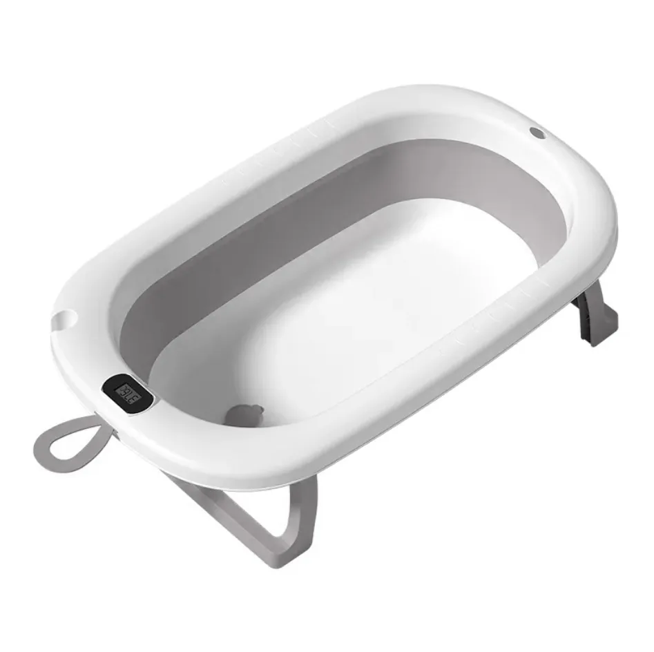 Profită reduceri și preț mic la Set cadita pliabila 76 cm Beberoyal Gri cu termometru digital, dop de scurgere si suport textil universal, numai la Nichiduta.