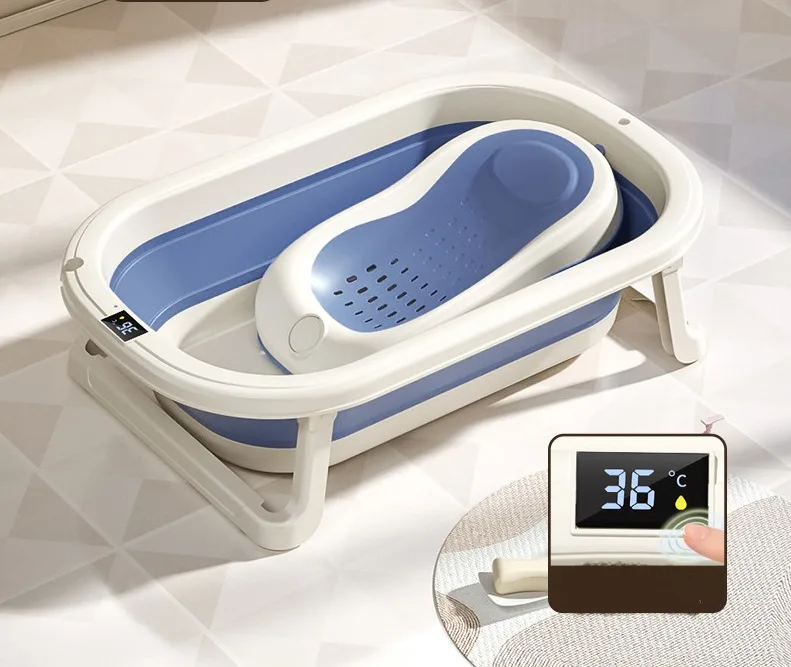Comandă Set Cadita si Suport anatomic detasabil pentru bebelusi Little Mom Blue, cu afisaj temperatura digital, design pliabil si compact, cu suprafete antiderapante, finisaje netede si sistem de agatare de la Nichiduta.