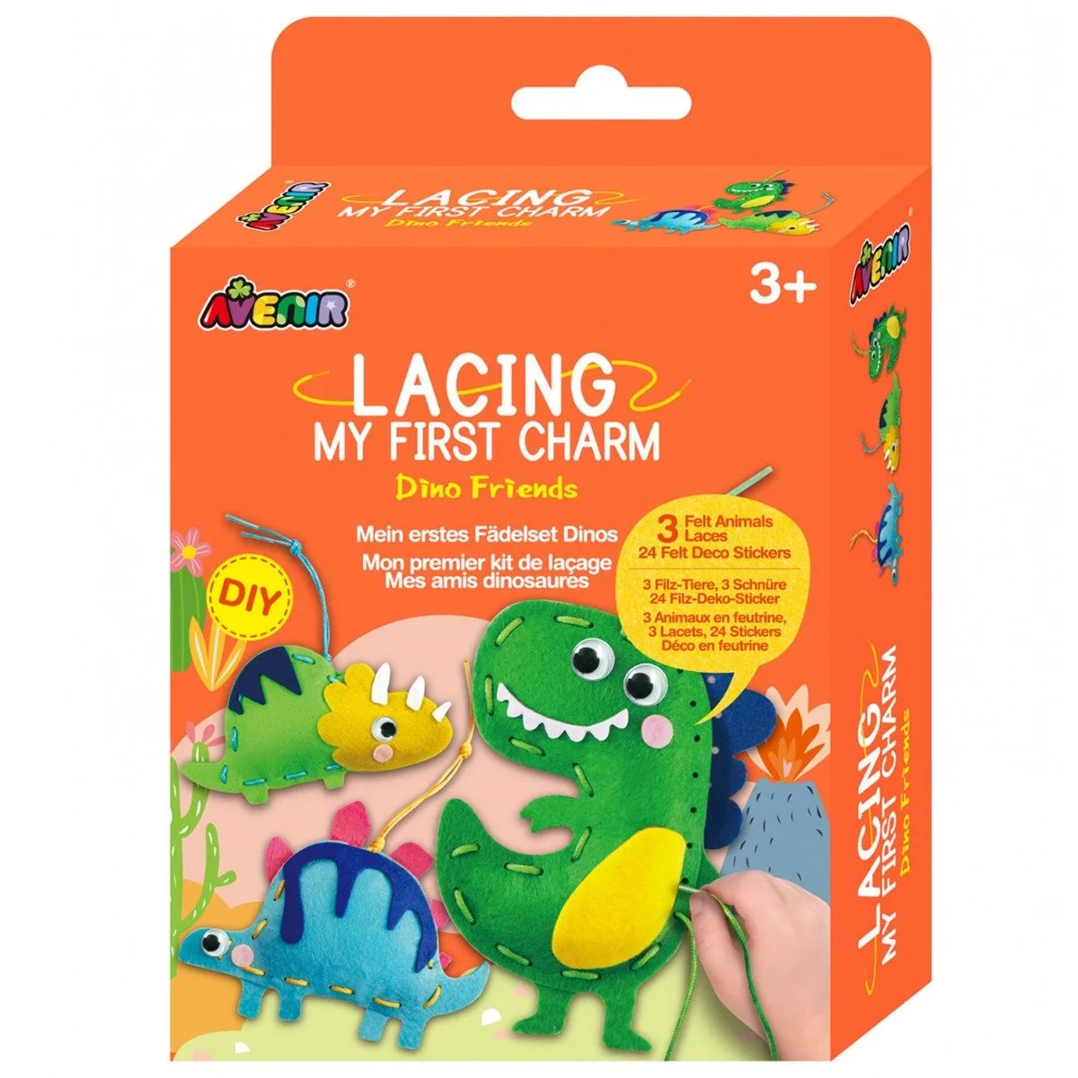 Copiii isi pot dezvolta abilitatile de cusut intr-un mod distractiv si sigur cu My First Charm Dino Friends! Conceput special pentru maini mici, setul foloseste sireturi groase si gauri mari, astfel incat cei mici sa poata crea cu usurinta trei dinozauri adorabili. Piesele din pasla sunt pretaiate si pot fi imbinate fara ac, folosind doar sireturi colorate, iar decorarea cu autocolante si ochi jucausi face experienta si mai amuzanta. Activitatea ii ajuta pe copii sa exerseze coordonarea si rabdarea, transformand fiecare dinozaur intr-un prieten unic de joaca. Setul contine:- foi de pasla pretaiate;- autocolante decorative din pasla;- ochi de plastic;- umplutura din bumbac;- sireturi colorate.