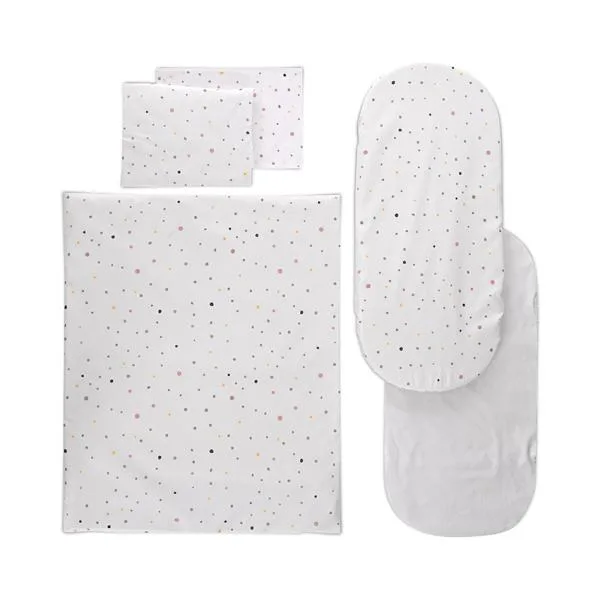 Setul de lenjerie pentru carucior, cu protectie impermeabila, din bumbac cu tesatura densa ranforce, ofera bebelusului un confort deosebit.Setul universal de lenjerie transforma plimbarile in carucior