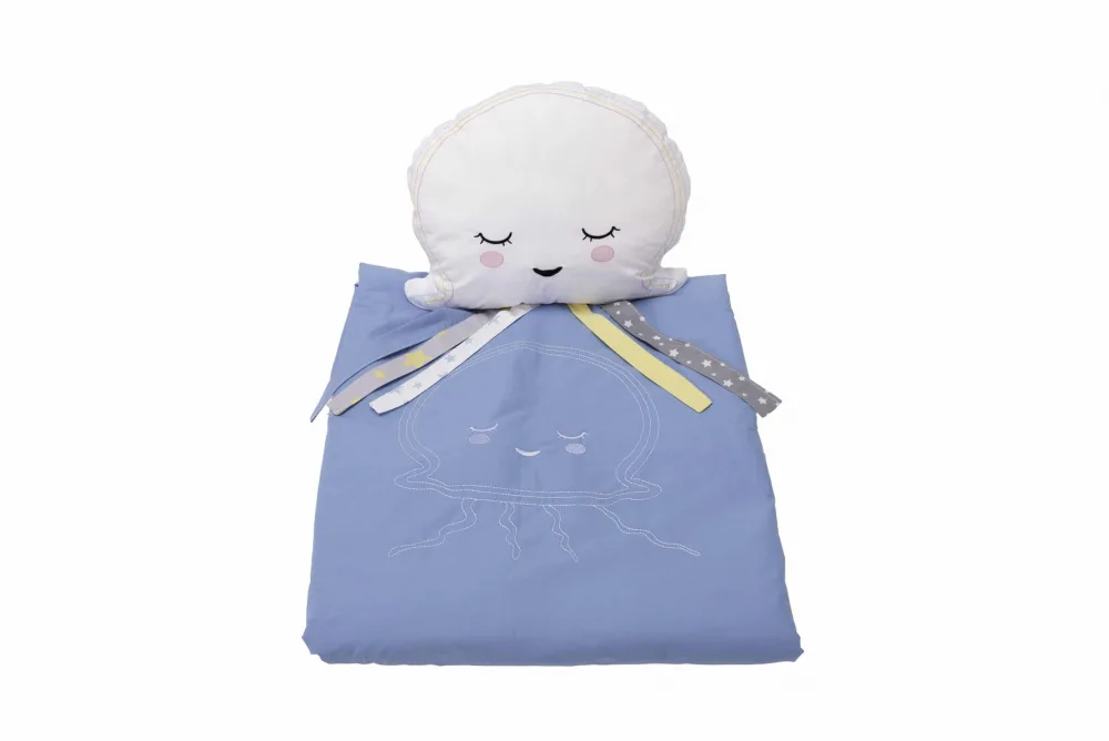 Comandă Set Somnart cu paturica brodata si perna meduza albastru de la Nichiduta.