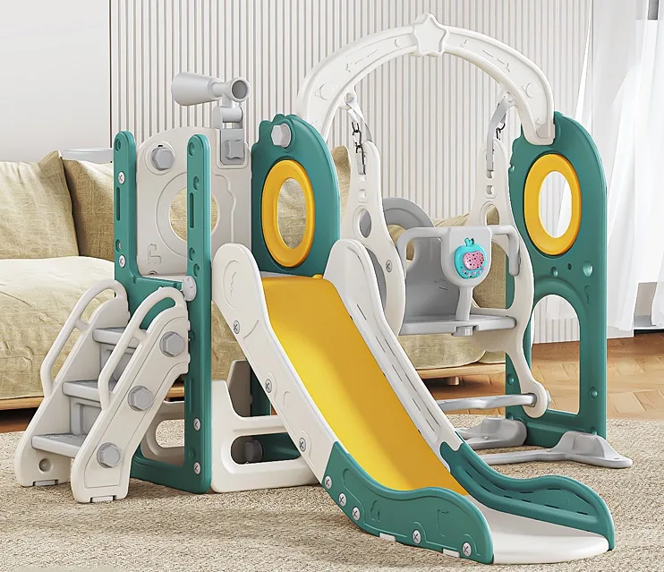 Profită reduceri și preț mic la Spatiu de joaca pentru copii Nichiduta Garden greenwhite, de interiorexterior, Leagan muzical cu masuta, tobogan, treptele de acces, balustrade laterale de sustinere, 150 x 170 x 110 cm, numai la Nichiduta.