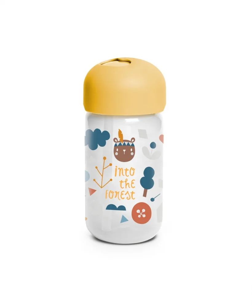 Sticla de apa cu pai inclus Suavinex Forest 340 ml galben