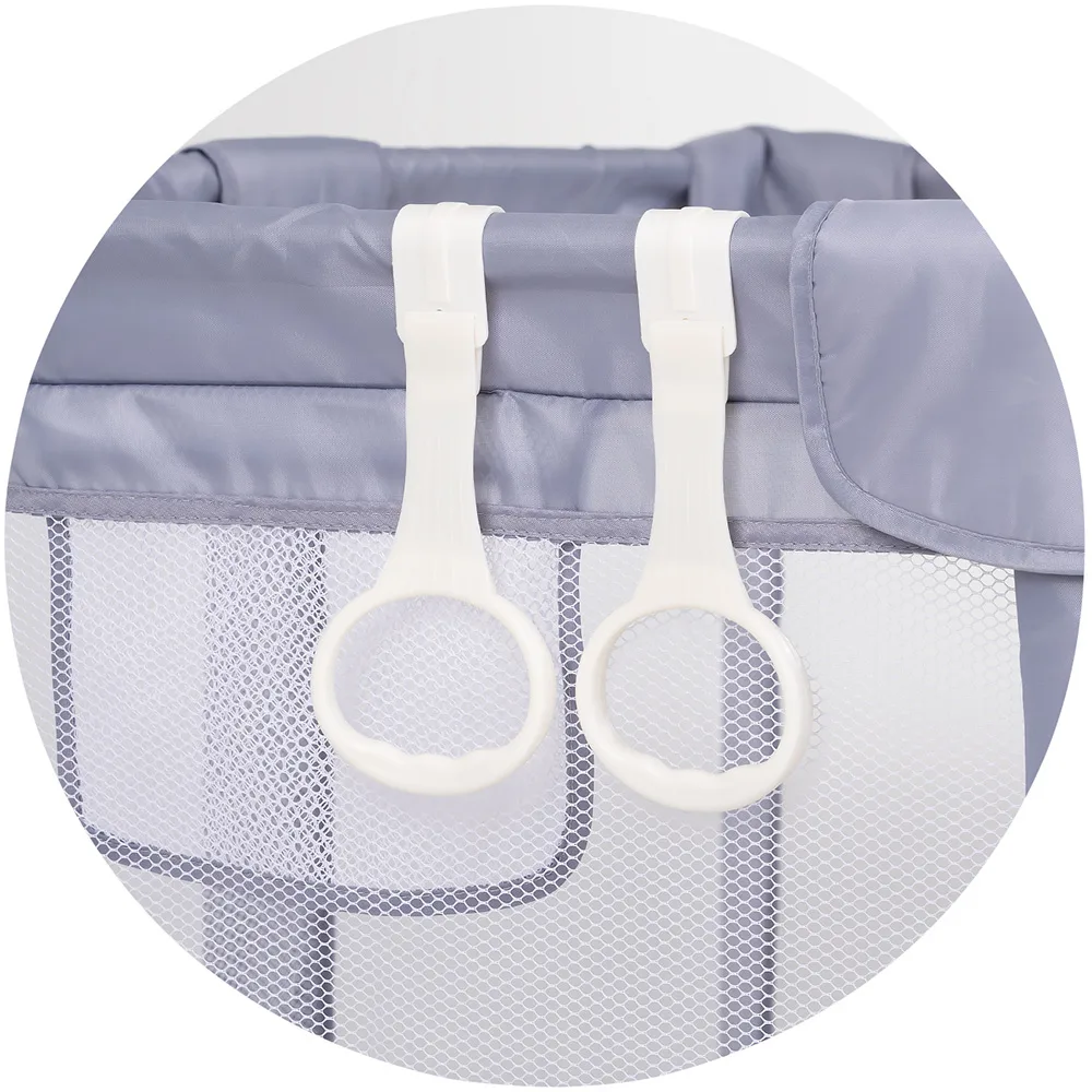 Tarc de joaca pentru copii 180×120 cm Chipolino Lotus Grey, 2 inele ajutatoare si usa cu fermoar