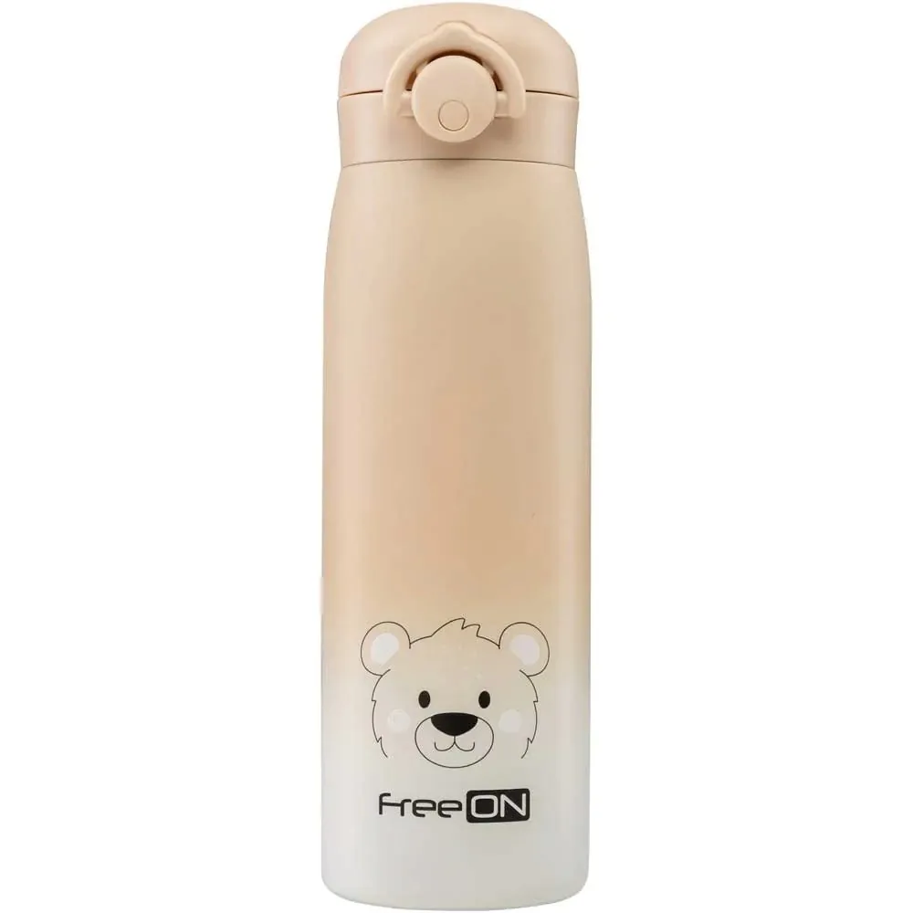 Profită reduceri și preț mic la Termos 480 ml Freeon Bej – Inox, Capac Etans, fara BPA, numai la Hippoland.