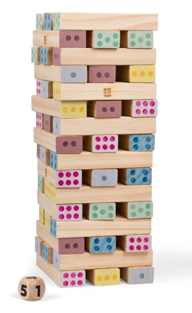 Un joc educativ de echilibru si coordonare pentru copii! Pe rand, aruncati zarul si scoateti blocul care corespunde numarului indicat – dar aveti grija sa nu daramati turnul! Veti alege un singur bloc sau veti echilibra turnul scotand doua blocuri care adunate dau acelasi numar? Pachetul contine:- 48 de blocuri din lemn (15 x 4 x 2.5 cm);- 1 zar din lemn (3 cm). Ce dezvolta acest joc:- Abilitati motorii grosiere;- Coordonare si echilibru;- Concentrare si rabdare. Joc educativ Montessori!